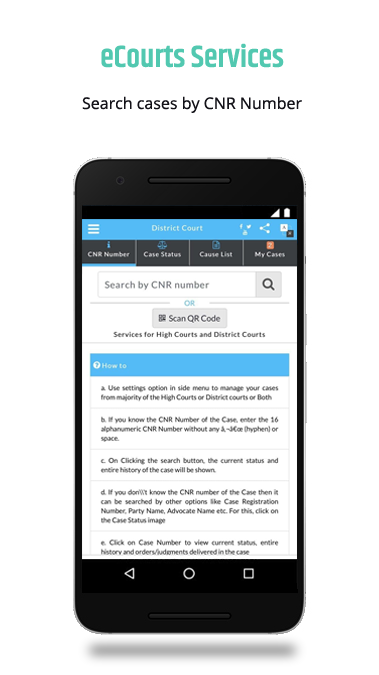 • In the App services are given under different caption viz. Search by CNR, Case Status, Cause List,calendar and My Cases.