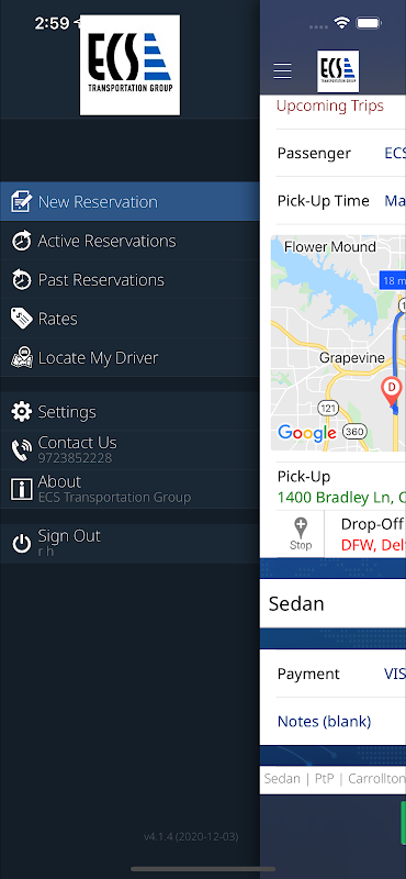 Creating real-time reservations is quick and easy with our free ECS mobile application for iPhone and android. Now you can have instant access to current and older reservations, select from our transportation options and: