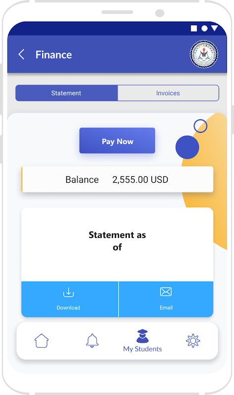 • Documentation, any that the institution wishes to make available to parents and students, can be uploaded by the institution onto the mobile application for you to view;