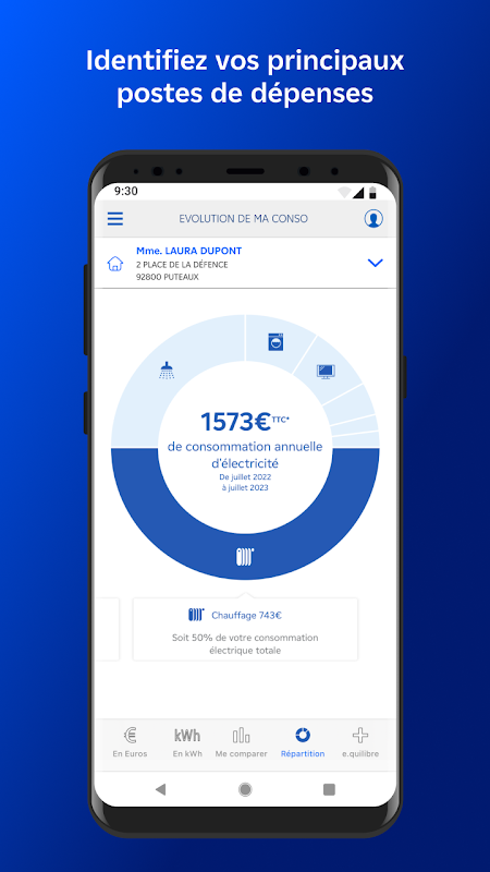 • associate your connected objects (thermostat, weather station, radiator, etc.) and view the distribution of your uses,