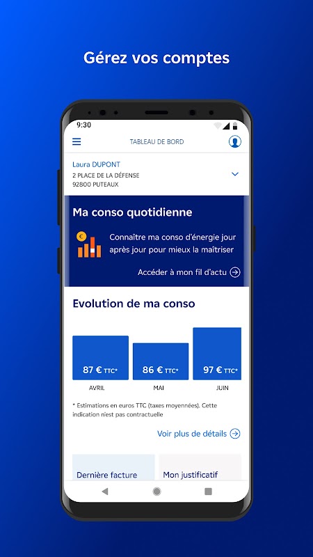 • see at a glance the status of your EDF account and your consumption on the dashboard,