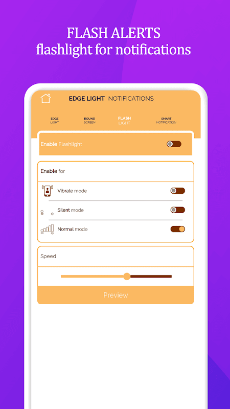 ♦ Customize the flashlight alerts: adjust the speed and style from slow to fast and blinking, flashing, or rotating lights.