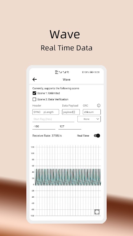 Draw the received hexadecimal data into a waveform diagram in real time, visually display the data changes, and support data verification, such as CheckSum, CRC-8, LRC and other verification algorithms to ensure the accuracy of the data