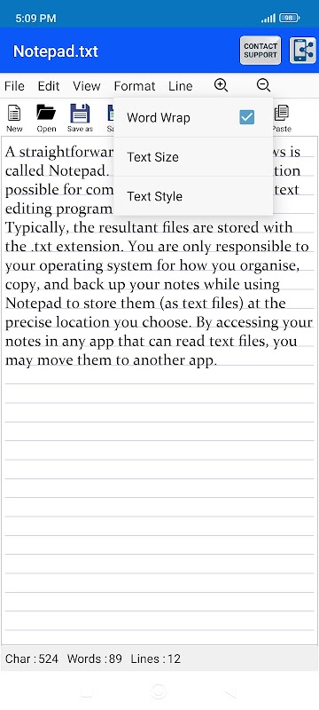 Select text and Word wrapping features to make the text editing easy and simple.