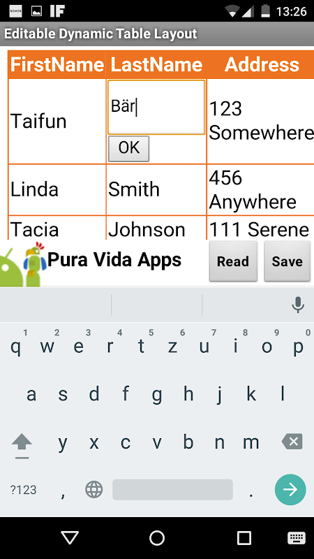 This is a DEMO APP for APP INVENTOR and demonstrates, how you can add Editable(!) Dynamic Table Layout into your App Inventor app.