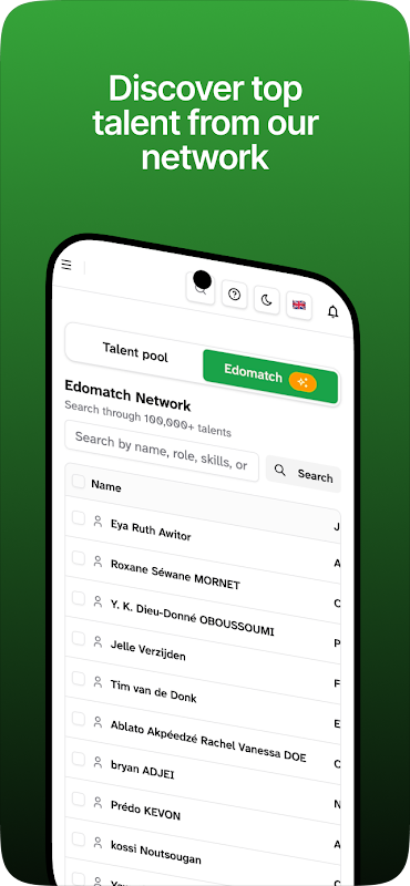 Go beyond job applications. Search your own talent pool or access the broader Edomatch network to find passive candidates who match your requirements. Filter by experience, skills, location, and more.