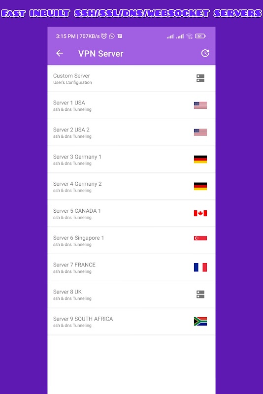 - Secure your connection using SSH, WEBSOCKET, SLOWDNS tunnel