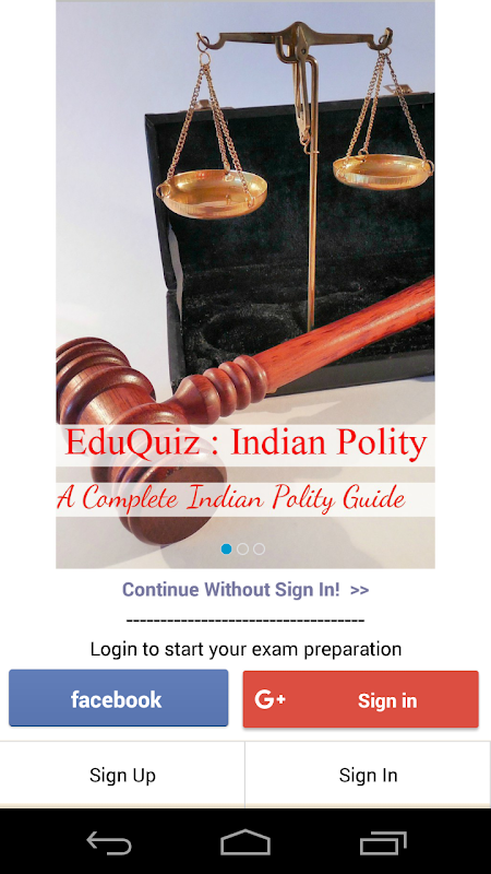 The application offers online test series of multiple choice questions (MCQ) & summary notes on various Indian Polity topics required for competitive exams like UPSC, State PSC, Bank PO, RRB, Police Exams etc.