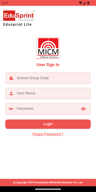 Note : Please ask your School to register with MICM Net Solution PVT LTD to get benefits of Edusprint Lite App (App Credentials will provided by school authorities only)