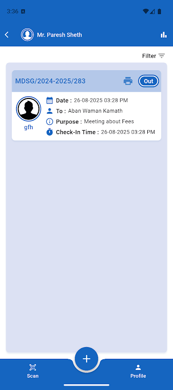 Check-in / Check-out: Easily record visitor entry and exit for security and tracking.