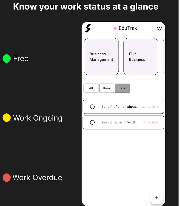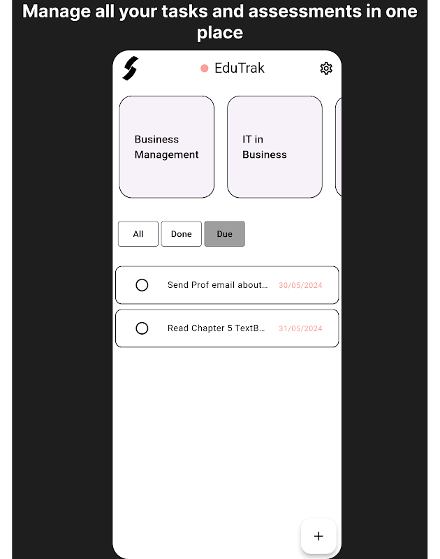 EduTrak is your all-in-one solution for managing tasks and assessments, tailored for students and lifelong learners. Stay organized and stress-free with an intuitive app that helps you keep track of everything in one place.