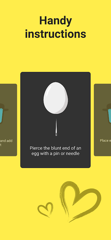 Easy to use egg timer. Select a mode and get a perfectly boiled egg just in time to have a tasty breakfast.