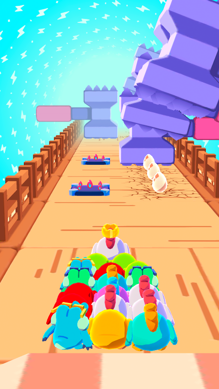 Hop and cluck towards the finish line! But don’t worry about doing it alone. There are so many chicks to (hatch and) pick up along the way. The more chicks you set free, the easier it will be to crack the mystery egg at the end of each run!