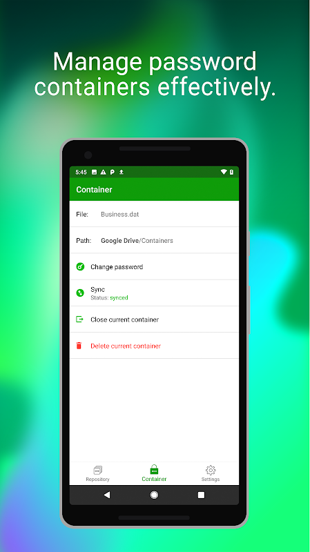 • Automatic closing of current Password container after a timeout and when the App is switched into the background mode.