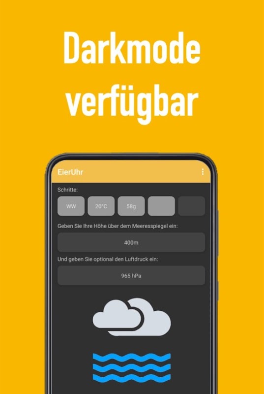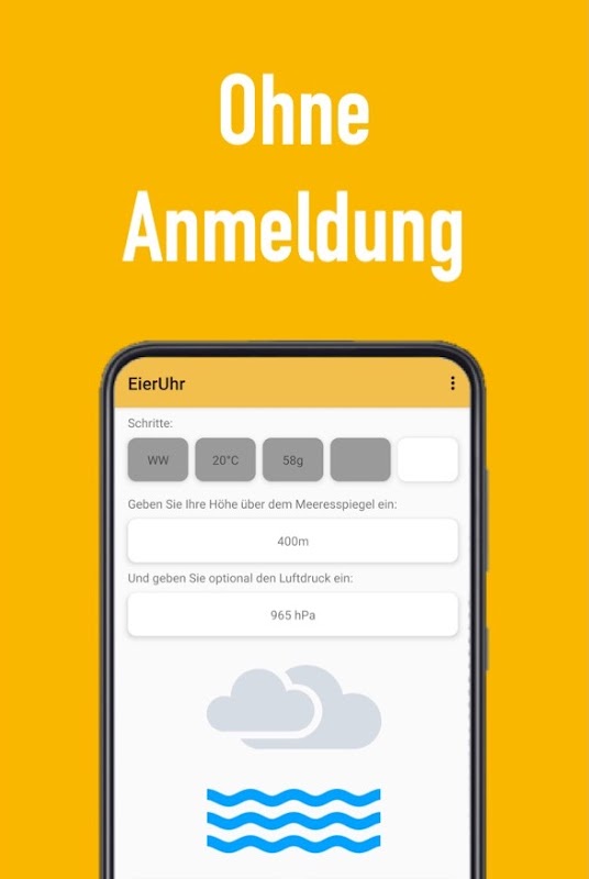 This app has been developed for an optimal result for cooking chicken eggs. There is no guarantee for improper use. No liability can be accepted for damage to health. Use only fresh, health-friendly chicken eggs.