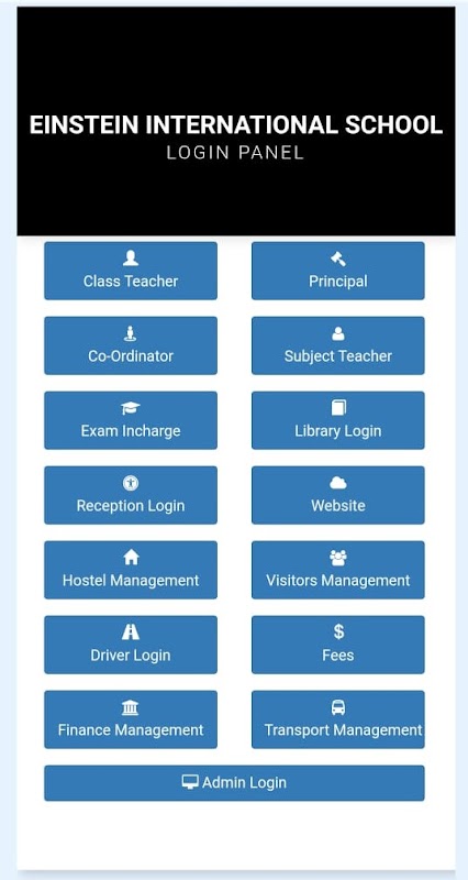 This application for Admin, Teacher, Principal, Library, Fees in-charge, Account Department, Reception, Driver, HR of the school to maintain all school activity