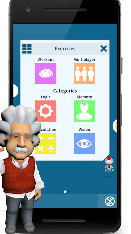 Take only 5 minutes each day to keep your brain young and fresh! Whether alone, with family or friends around the world, the Einstein™ Brain Training accompanies you with 30 different exercises. The famous Albert Einstein will assists you throughout your journey and explain how your brain is activated and supported by the training.