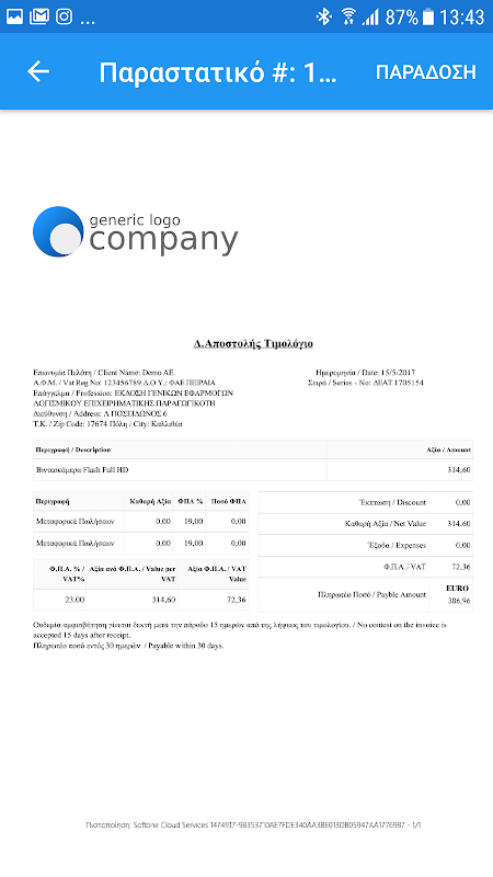 Mobile Application for Invoice Synchronization by Soft One Technologies S.A.