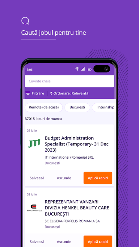 eJobs is the Romanian job platform that manually checks all ads and companies. On eJobs you have ads with displayed salaries, jobs from all fields and industries, remote jobs and abroad.