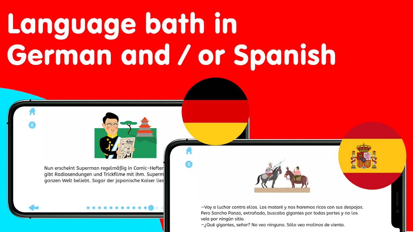 Books, speech development, comprehension activities, lesson support and more: eKidz.eu is an ad-free, safe way for children ages 5+ to learn English, Spanish and German. Our illustrated books are spread across graduated levels with progressive reading comprehension levels to ensure language learning at a comfortable, individual pace.