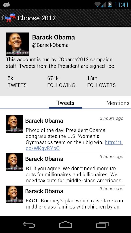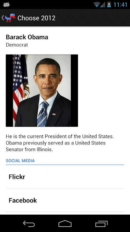 Choose 2012 is your 2012 United States Presidential Election headquarters on Android.