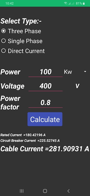 This application is concerned with electrical calculations of interest to workers in the field of electricity, whether engineers or technicians such as