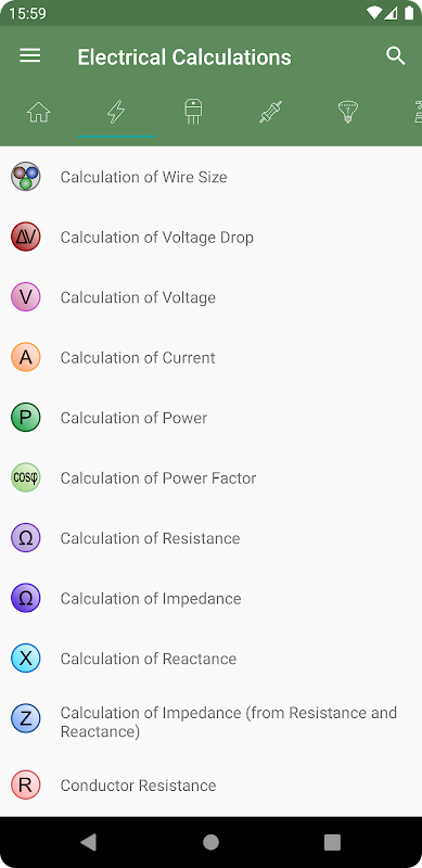 This app contains electrical calculations, electronic calculations, lighting calculations, motor calculations, conversions and pinouts.