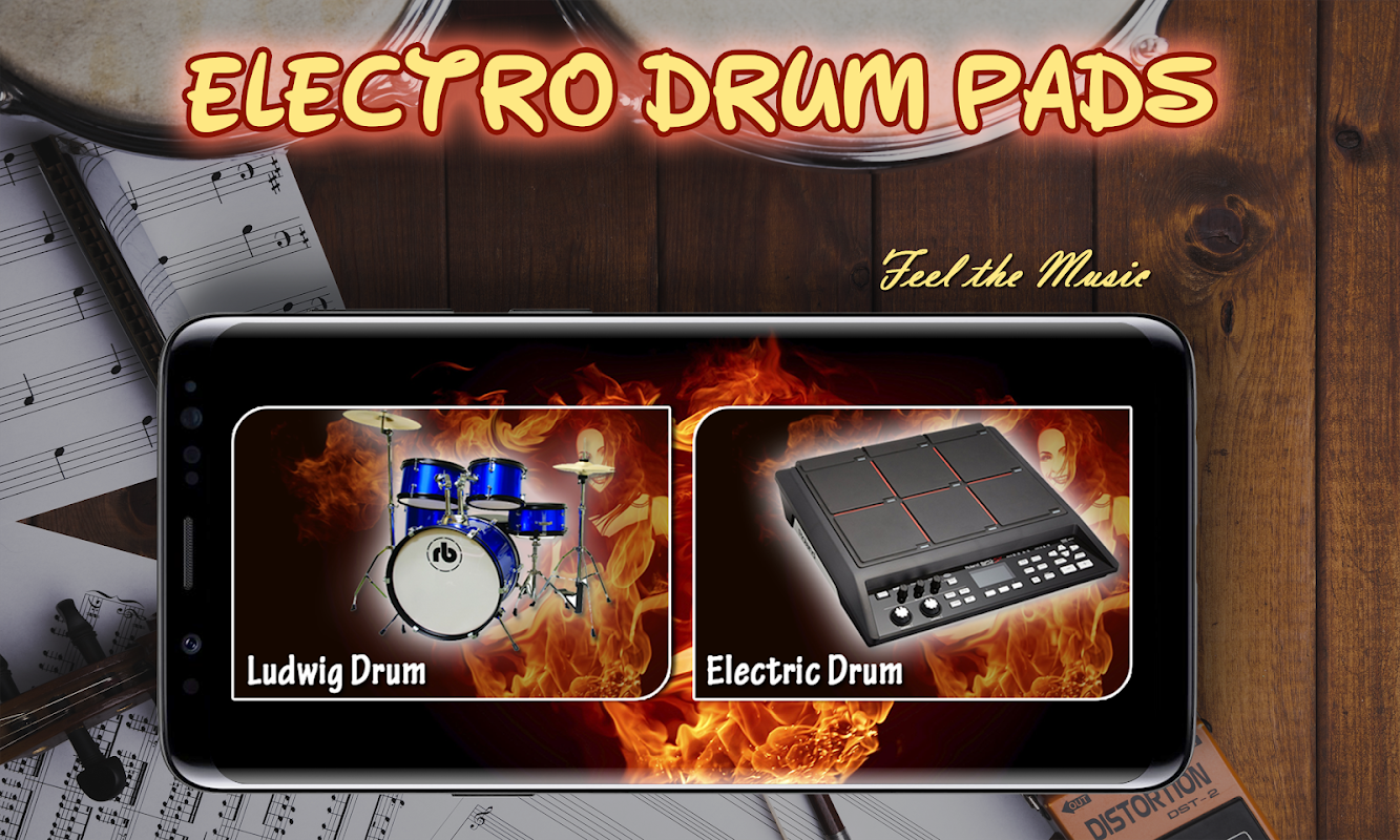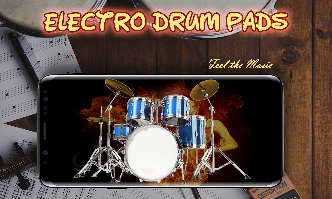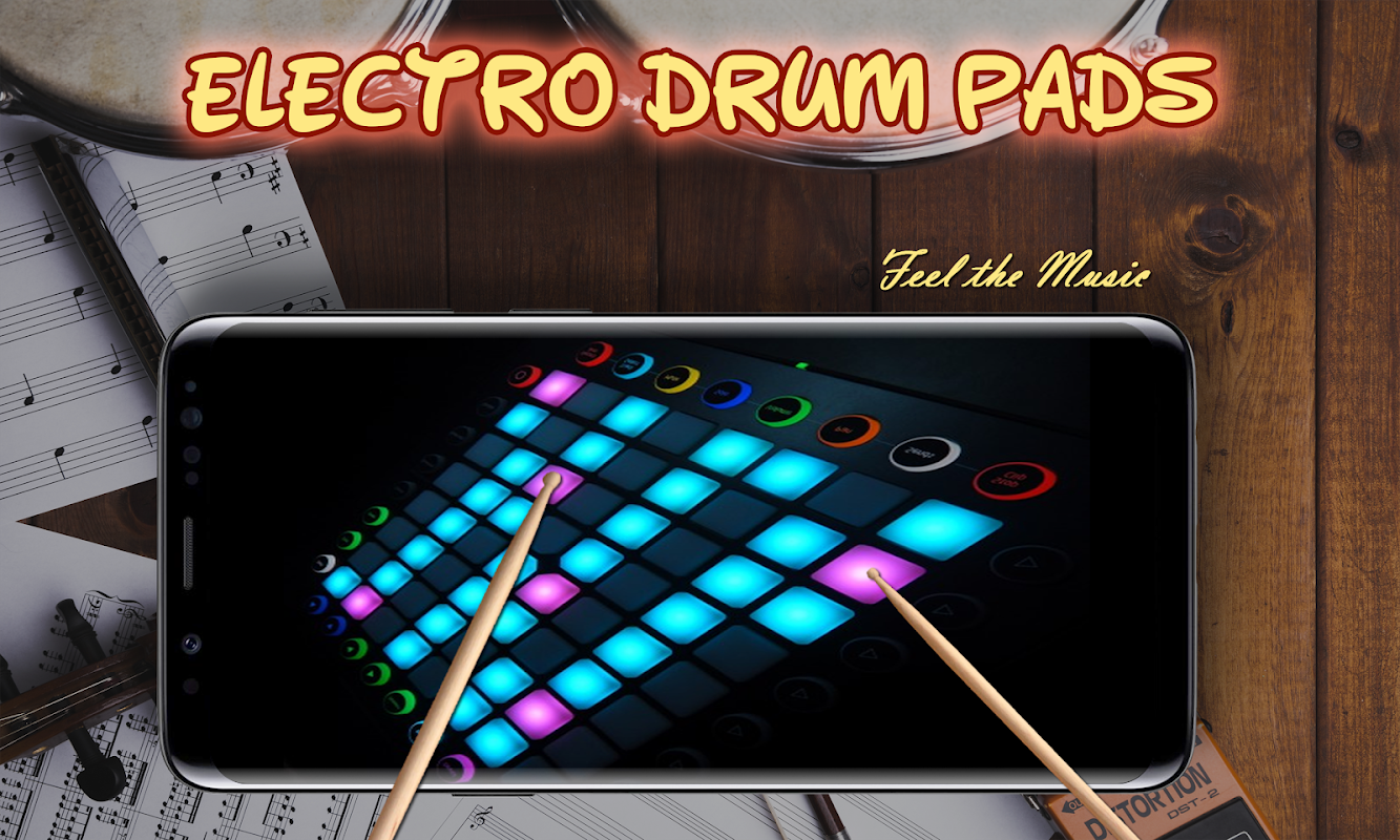 This application Electro Music Drum pad interpretation will make your music sound as a producer of popular EDM!