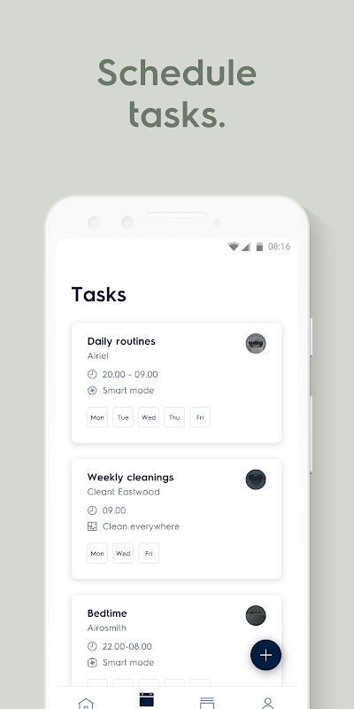 Choose between different cleaning options to get the best from your devices. Understand what is happening in your home at a glance. Schedule tasks to automate your cleaning for a better home environment.