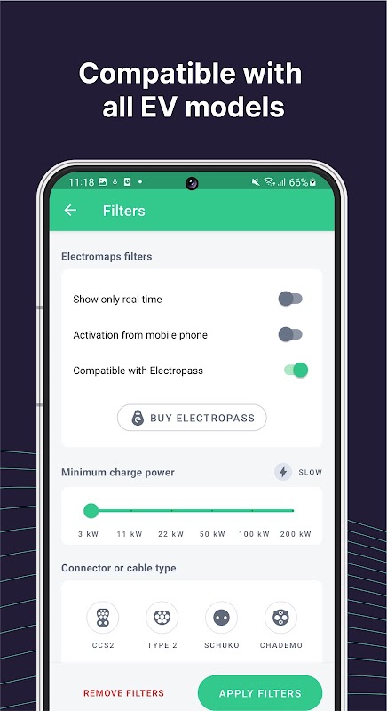 Electromaps allows you to find all available charging stations for electric vehicles and charge at many of them. With Electromaps you can search for charging stations by connector type, power, establishment type, to best suit your needs.