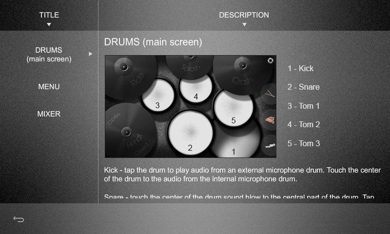 - Slide your finger between the drums (Tom 1, Tom 2, Tom 3) for fill moments;