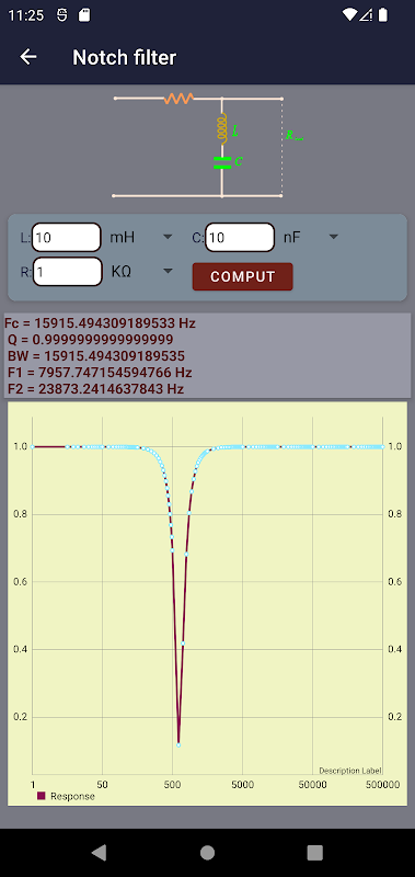 with filter calculator pro you can calculate the parameters or components of a passive RL, RC, LC, Butterworth, Bessel, Chebyshev, and active filter.