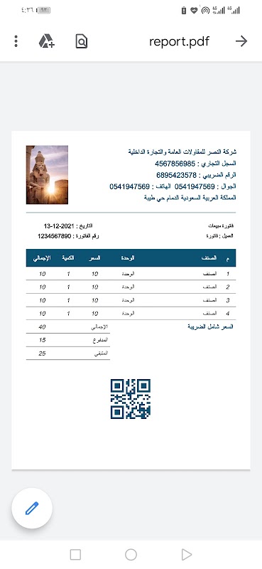 Settings section: save the institution’s data, commercial register, tax number, value added tax, add tax to the unit price or isolate it, and the institution’s logo / to display data on reports and sales invoice