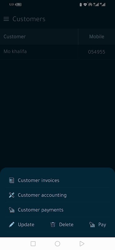 Customer options: customer invoices / account statement printing / customer supplies / payments