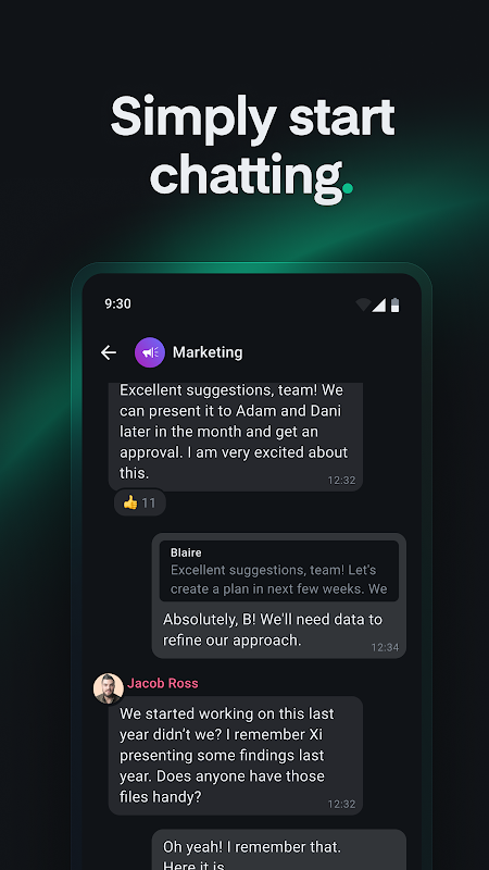 • Boost your productivity with collaboration features: file sharing, replies, emoji reactions, polls, read receipts, pinned messages, etc.