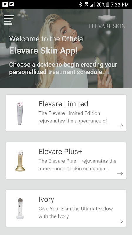 Elevare Skin app will create your facial treatment schedule and track its progress. Taking to account your age, skin type, wrinkle degree and gender, our application will a generate a treatment schedule to fit your needs. You can use the application to track the treatment time per each facial part while having the app displaying on the screen the exact section to work on. A quick access to our online guideline, videos, contact us information as well as having an option for social sharing.