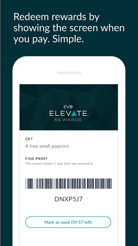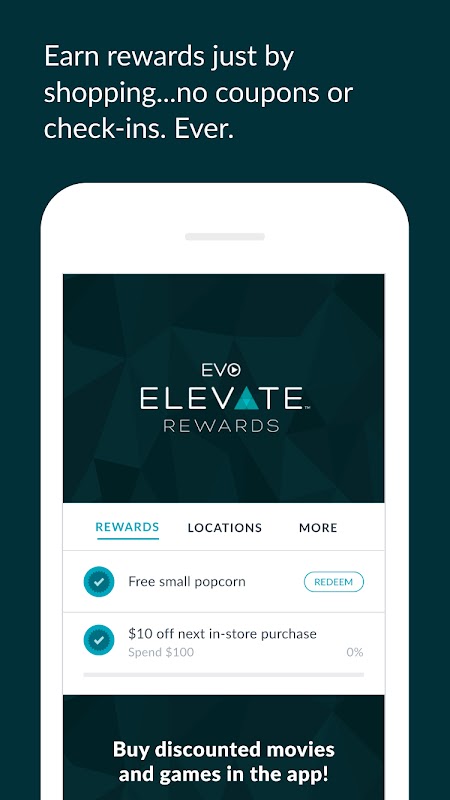Use the EVO Entertainment Elevate Rewards™ app to get rewards whenever you visit