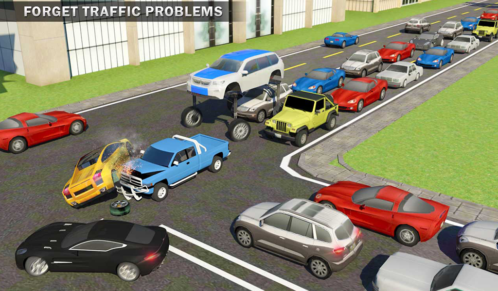 Take charge of the presidential elevated autocar or luxury supercar, drive above extreme traffic and get Mr. President to reach white house safely. This modern american car can drive 6 feet above ground level so that big city traffic flows beneath it without collisions. Enter into realistic open world games of future to ride straddling rush hour smart taxi without any crash drive in metro city. This fast-paced extreme car taxi game enhance your new york city driving school ability and suv prado car parking simulator skills. Passengers can experience a ride on high tech transit sedan better than other crazy taxi or modern taxi cab vehicles. Pick & drop passengers on board to elevated bus stops and become a real car parking master. This next-gen automobile is bigger than other NY mcqueen cars and better than major city taxi service.