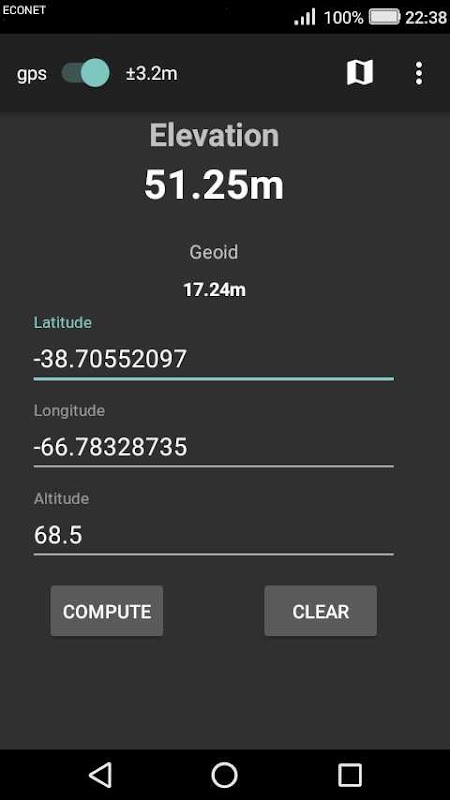 This app aims at finding the reference geoid of a location using its latitude and longitude and using this value to calculate the true height above sea level of the location.