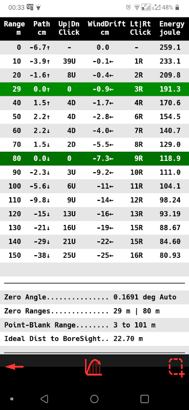 • Point-Blank Range calculations for hunting and tactical scenarios.
