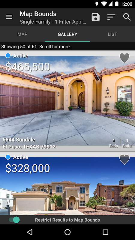 - View properties on maps (street, satellite and hybrid), gallery and list views