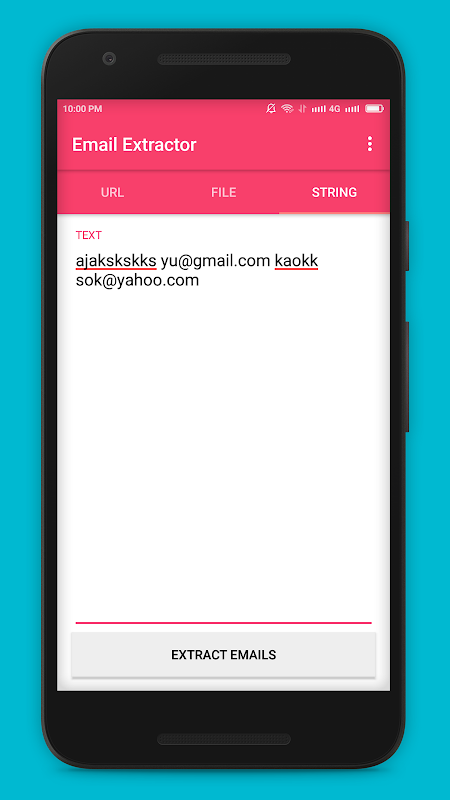 Easy Email Extractor is a handy Android application which allows you to easily extract email addresses from files, text and urls. You can extract email addresses from entire folders or sd card by filtering file extensions to search. You can copy the found email addresses to the Windows clipboard, extract emails from files.
