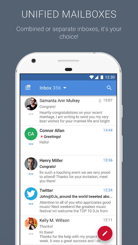 Unified Experience – Combine emails from all of your accounts into a unified mailbox or view each account separately.