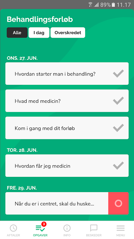 Activity list: There are a number of activities, distributed on a timeline, that the patient must perform. The timeline symbolises your course. Citizens will receive notifications regularly, reminding them to perform the activities. Eg. start fasting.