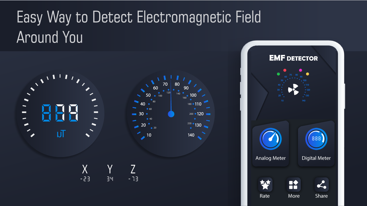 Magnetometer and EMF Detector emf stand for Electromagnetic Field. So metal detector and emf detector mean to detect Electromagnetic Field and works as electromagnetic field detector. EMF detector with RF scanner have Electromagnetic property detect paranormal EMF activity around you. You can use this EMF Detector and Radiation Detector app as an emf finder and it will also work like emf field locator. EMF Detector and also Ghost Detector lets you detect magnetic field of different devices and objects around you so you can also test out different things. Emf finder detector is also known as metal detector and can also use it as emf meter.