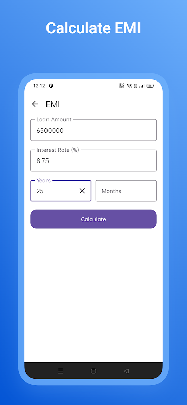 Calculate EMI payments for your loans with ease using our EMI calculator app.