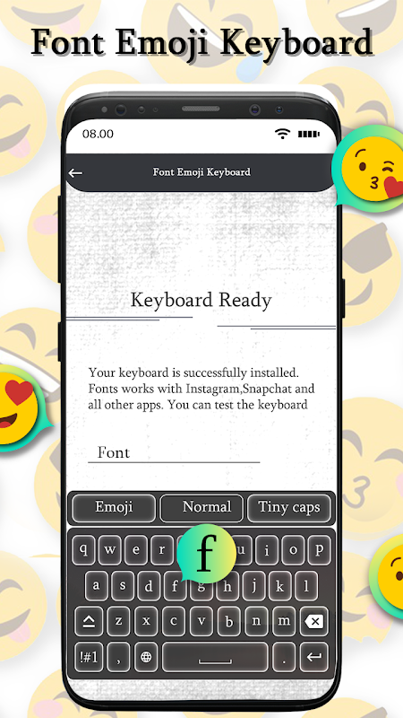 Emoji Font Keyboard-Fancy Keyboard is a free Keyboard app with you can personalize your choice chat with different Text styles. Share Cute Emoji to anyone using this Keyboard for Android. Customize the font style in Keyboard. App with get all text and keywords and also emojis to share your emotions without any words. The app is easy and simple to use by any users.