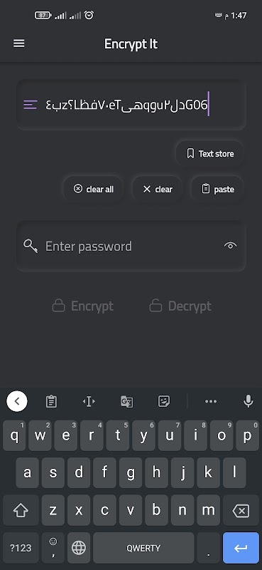 • Encrypted texts can be easily stored within the application in "Text Store"; For easy access at any time later.