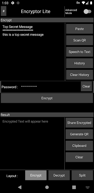 Users can use this app to encrypt some text they wanted to share, they need to input the password in order to encrypt the text. And at the receiving end the other user will get a encrypted text which will look something like this : [Ravh4bnn2ugf43434434p3bvu3fnj3upoen3i4] which makes no sense, but on using the password (the password used by the first user to create the encrypted message) we can decrypt the message to get the message that the first user encrypted. There is another way of sharing the encrypted messages, as QR-Codes, in this method the user can generate a QR-Code by using the features of the app which can be shared directly from the app itself via other apps. And this Qr-Code can also be printed. The message in this QR-Code can be Cracked only by using the password that the first users used in order to create the Code.