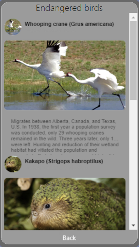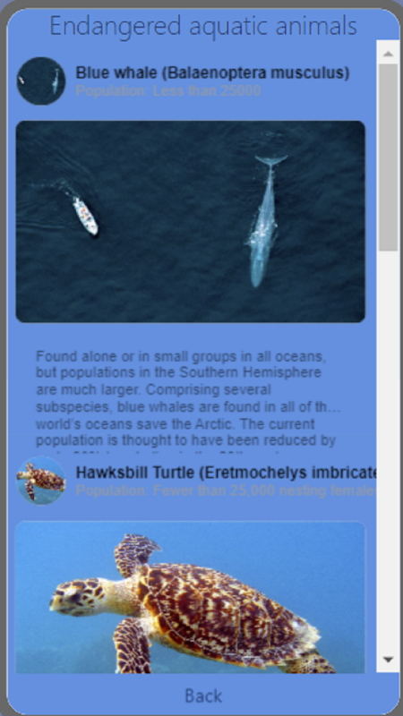 You click on a type of animal and it gives information about animals who are endangered that are that type.